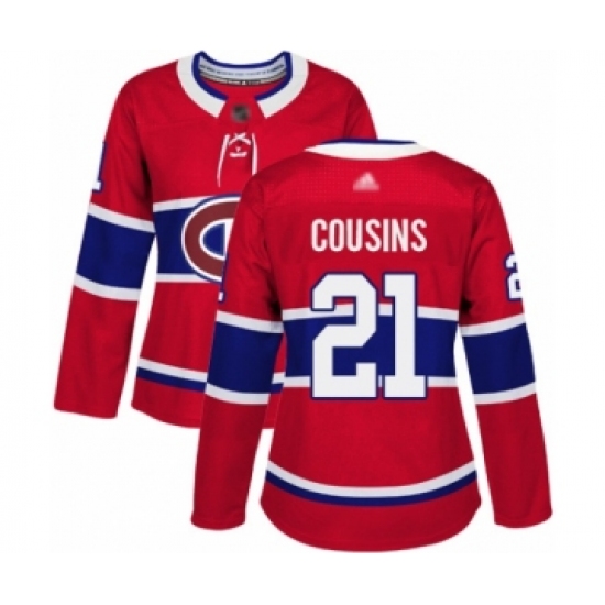 Women's Montreal Canadiens #21 Nick Cousins Authentic Red Home Hockey Jersey