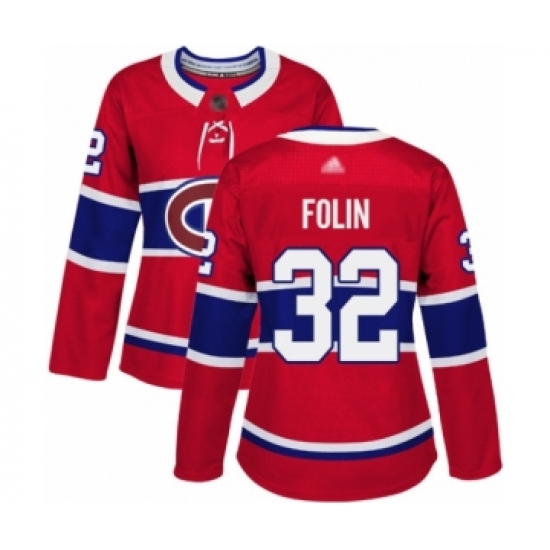 Women's Montreal Canadiens #32 Christian Folin Authentic Red Home Hockey Jersey