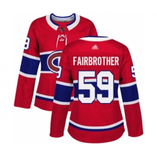>Women's Montreal Canadiens #59 Gianni Fairbrother Authentic Red Home Hockey Jersey