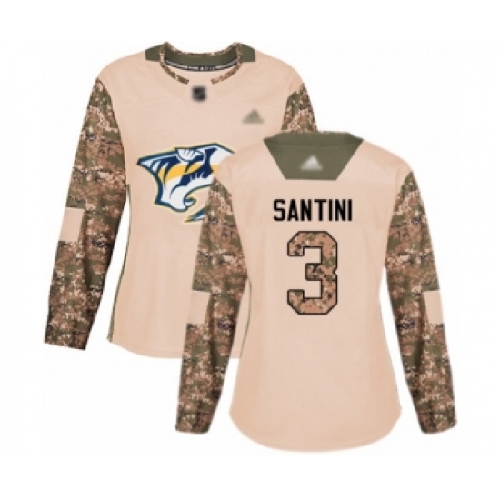 >Women's Nashville Predators #3 Steven Santini Authentic Camo Veterans Day Practice Hockey Jersey
