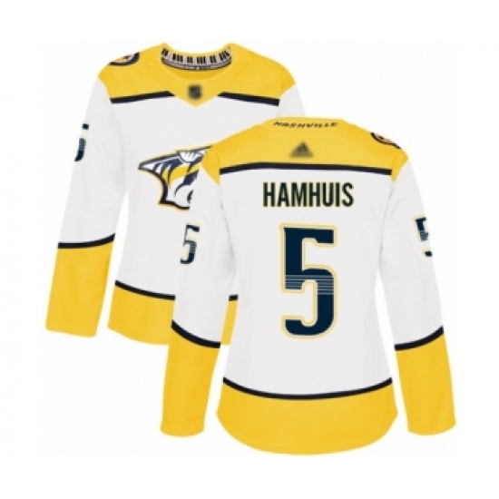 Women's Nashville Predators #5 Dan Hamhuis Authentic White Away Hockey Jersey