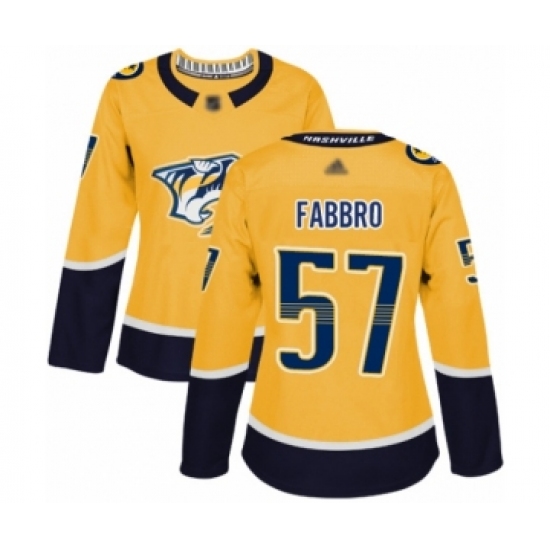 >Women's Nashville Predators #57 Dante Fabbro Authentic Gold Home Hockey Jersey