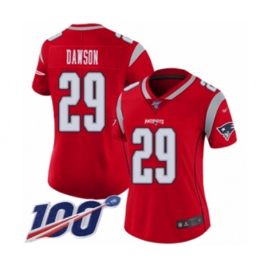 >Women's New England Patriots #29 Duke Dawson Limited Red Inverted Legend 100th Season Football Jersey