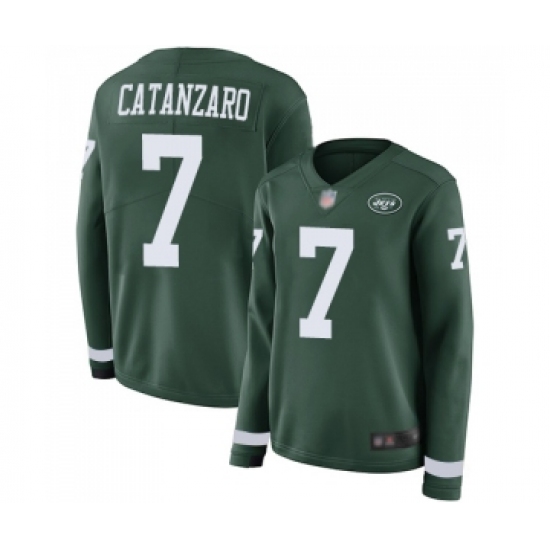 >Women's New York Jets #7 Chandler Catanzaro Limited Green Therma Long Sleeve Football Jersey