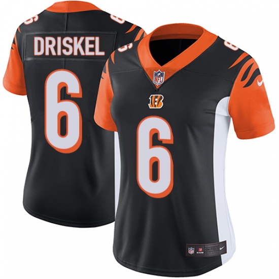 Women's Nike Cincinnati Bengals #6 Jeff Driskel Vapor Untouchable Limited Black Team Color NFL Jersey