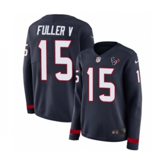 >Women's Nike Houston Texans #15 Will Fuller V Limited Navy Blue Therma Long Sleeve NFL Jersey