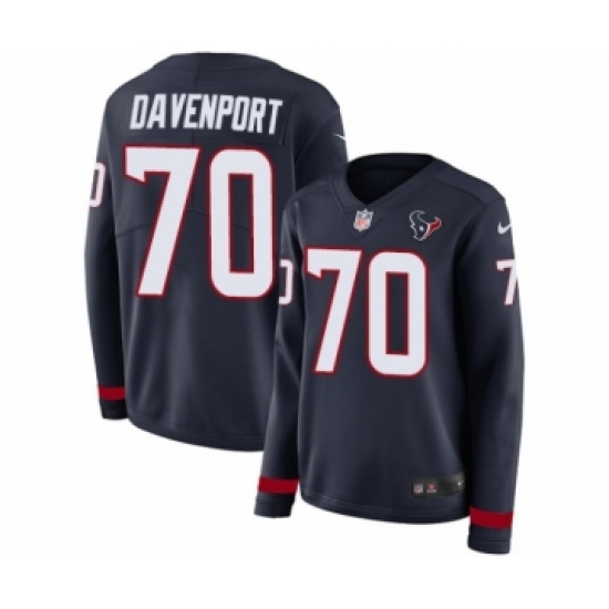 Women's Nike Houston Texans #70 Julien Davenport Limited Navy Blue Therma Long Sleeve NFL Jersey