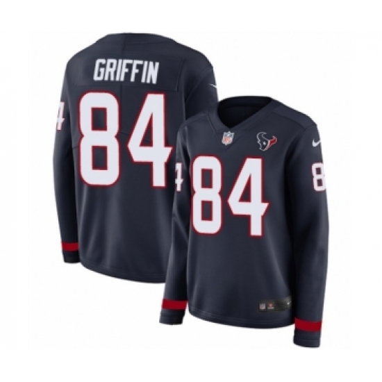 Women's Nike Houston Texans #84 Ryan Griffin Limited Navy Blue Therma Long Sleeve NFL Jersey