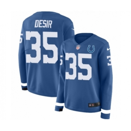 >Women's Nike Indianapolis Colts #35 Pierre Desir Limited Blue Therma Long Sleeve NFL Jersey