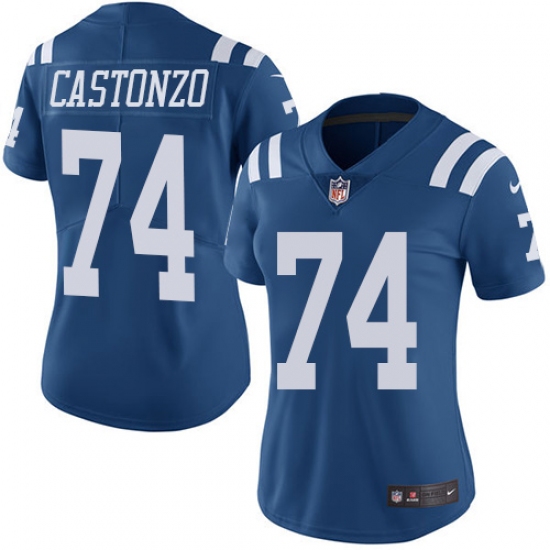 Women's Nike Indianapolis Colts #74 Anthony Castonzo Limited Royal Blue Rush Vapor Untouchable NFL Jersey