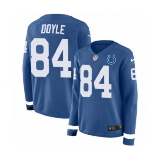 Women's Nike Indianapolis Colts #84 Jack Doyle Limited Blue Therma Long Sleeve NFL Jersey