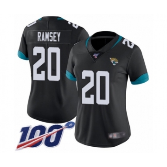>Women's Nike Jacksonville Jaguars #20 Jalen Ramsey Black Team Color Vapor Untouchable Limited Player 100th Season NFL Jersey