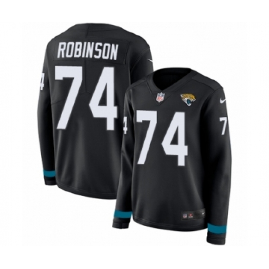 >Women's Nike Jacksonville Jaguars #74 Cam Robinson Limited Black Therma Long Sleeve NFL Jersey