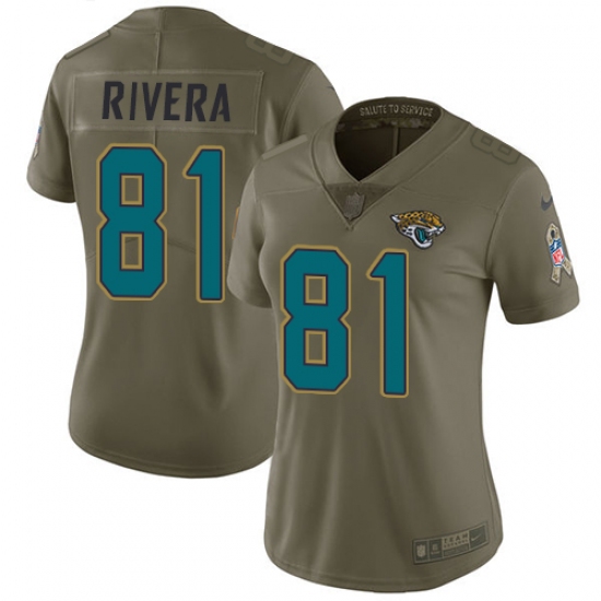 Home>NFL>Jacksonville Jaguars>Mychal Rivera>Women's Nike Jacksonville Jaguars #81 Mychal Rivera Limited Olive 2017 Salute to Service NFL Jersey