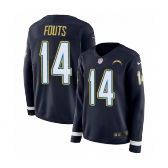 Women's Nike Los Angeles Chargers #14 Dan Fouts Limited Navy Blue Therma Long Sleeve NFL Jersey