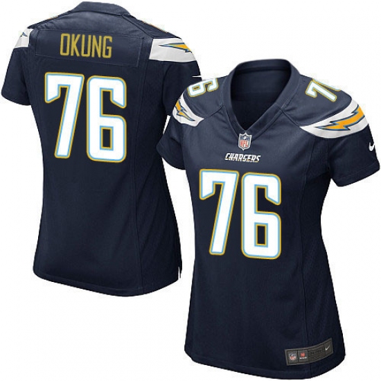 Home>NFL>Los Angeles Chargers>Russell Okung>Women's Nike Los Angeles Chargers #76 Russell Okung Game Navy Blue Team Color NFL Jersey