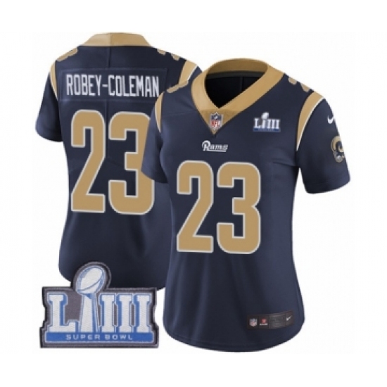 >Women's Nike Los Angeles Rams #23 Nickell Robey-Coleman Navy Blue Team Color Vapor Untouchable Limited Player Super Bowl LIII Bound NFL Jersey
