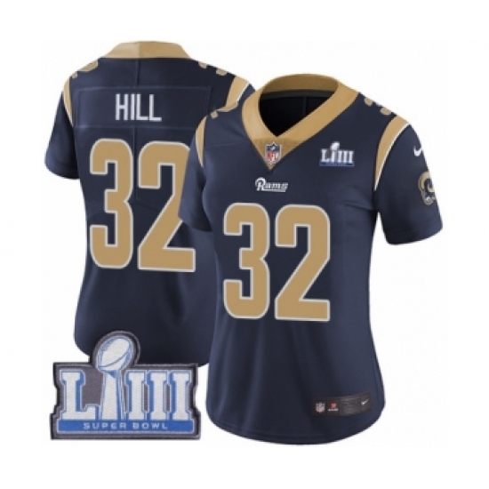 >Women's Nike Los Angeles Rams #32 Troy Hill Navy Blue Team Color Vapor Untouchable Limited Player Super Bowl LIII Bound NFL Jersey
