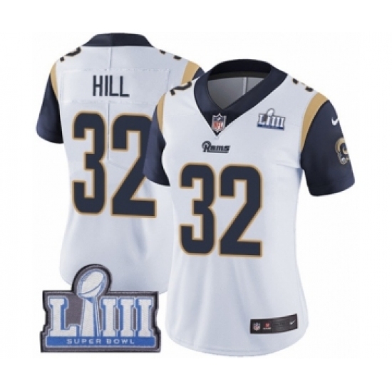 >Women's Nike Los Angeles Rams #32 Troy Hill White Vapor Untouchable Limited Player Super Bowl LIII Bound NFL Jersey