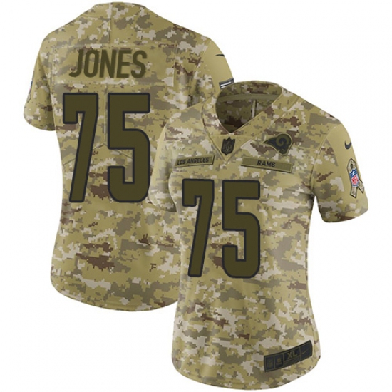 >Women's Nike Los Angeles Rams #75 Deacon Jones Limited Camo 2018 Salute to Service NFL Jersey