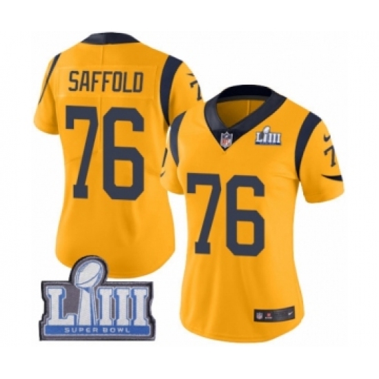 Women's Nike Los Angeles Rams #76 Rodger Saffold Limited Gold Rush Vapor Untouchable Super Bowl LIII Bound NFL Jersey