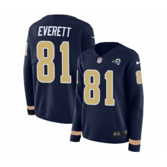 >Women's Nike Los Angeles Rams #81 Gerald Everett Limited Navy Blue Therma Long Sleeve NFL Jersey