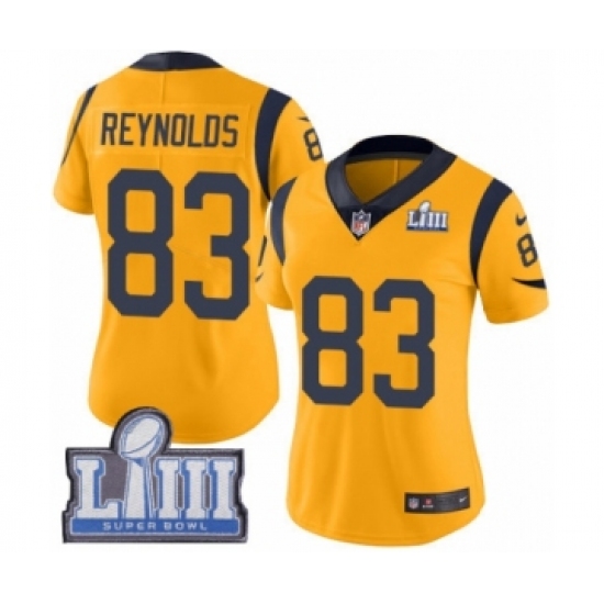 >Women's Nike Los Angeles Rams #83 Josh Reynolds Limited Gold Rush Vapor Untouchable Super Bowl LIII Bound NFL Jersey