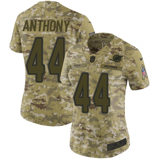 >Women's Nike Miami Dolphins #44 Stephone Anthony Limited Camo 2018 Salute to Service NFL Jersey