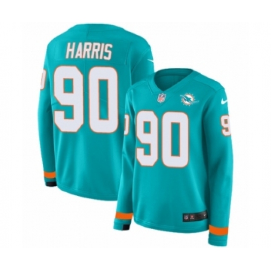 >Women's Nike Miami Dolphins #90 Charles Harris Limited Aqua Therma Long Sleeve NFL Jersey