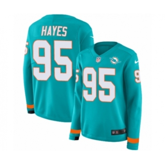 Women's Nike Miami Dolphins #95 William Hayes Limited Aqua Therma Long Sleeve NFL Jersey