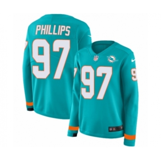 >Women's Nike Miami Dolphins #97 Jordan Phillips Limited Aqua Therma Long Sleeve NFL Jersey