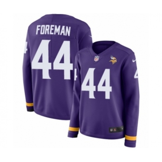 Women's Nike Minnesota Vikings #44 Chuck Foreman Limited Purple Therma Long Sleeve NFL Jersey