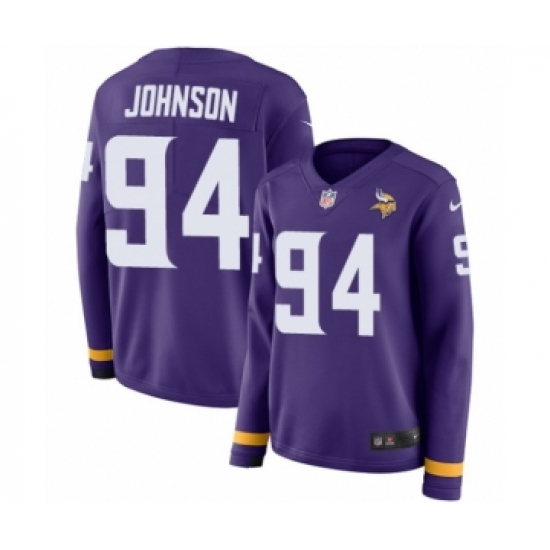 >Women's Nike Minnesota Vikings #94 Jaleel Johnson Limited Purple Therma Long Sleeve NFL Jersey