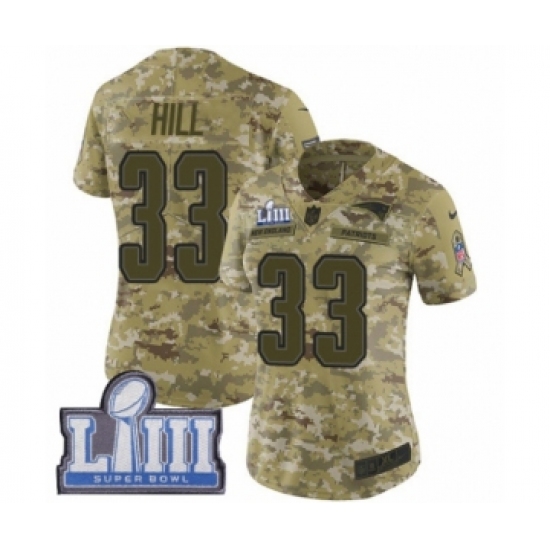 >Women's Nike New England Patriots #33 Jeremy Hill Limited Camo 2018 Salute to Service Super Bowl LIII Bound NFL Jersey