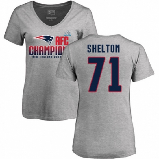 Women's Nike New England Patriots #71 Danny Shelton Heather Gray 2017 AFC Champions V-Neck T-Shirt