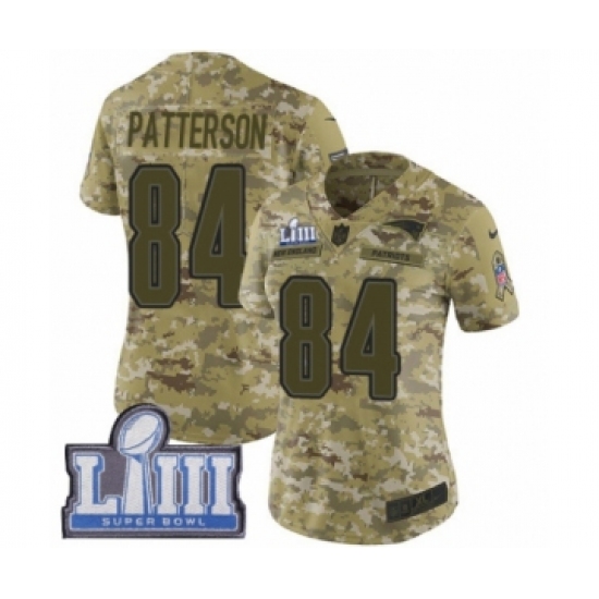 >Women's Nike New England Patriots #84 Cordarrelle Patterson Limited Camo 2018 Salute to Service Super Bowl LIII Bound NFL Jersey