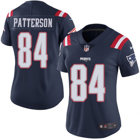 >Women's Nike New England Patriots #84 Cordarrelle Patterson Limited Navy Blue Rush Vapor Untouchable NFL Jersey