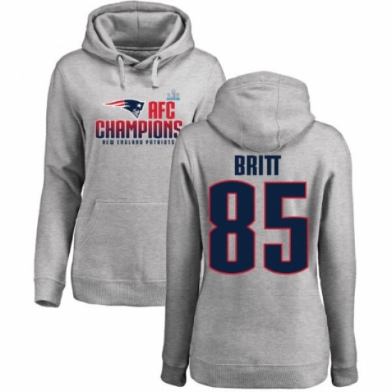 >Women's Nike New England Patriots #85 Kenny Britt Heather Gray 2017 AFC Champions Pullover Hoodie