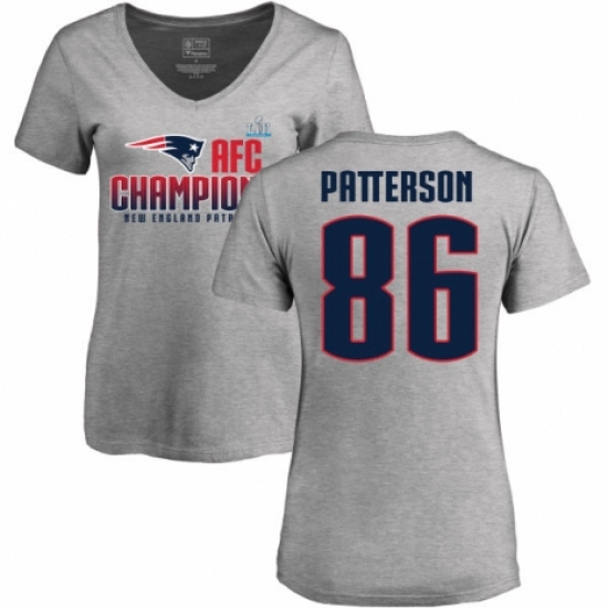 >Women's Nike New England Patriots #86 Cordarrelle Patterson Heather Gray 2017 AFC Champions V-Neck T-Shirt