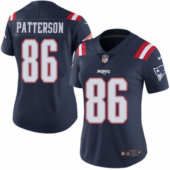 >Women's Nike New England Patriots #86 Cordarrelle Patterson Limited Navy Blue Rush Vapor Untouchable NFL Jersey