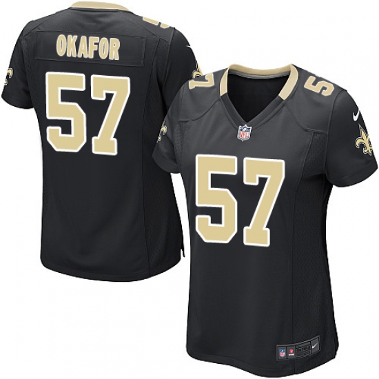 Home>NFL>New Orleans Saints>Alex Okafor>Women's Nike New Orleans Saints #91 Alex Okafor Game Black Team Color NFL Jersey