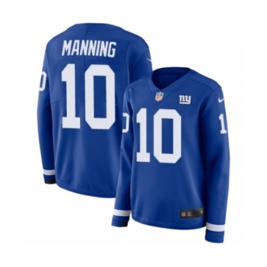 Women's Nike New York Giants #10 Eli Manning Limited Royal Blue Therma Long Sleeve NFL Jersey
