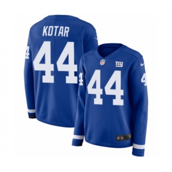 >Women's Nike New York Giants #44 Doug Kotar Limited Royal Blue Therma Long Sleeve NFL Jersey