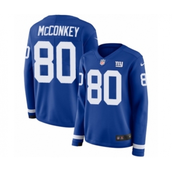 >Women's Nike New York Giants #80 Phil McConkey Limited Royal Blue Therma Long Sleeve NFL Jersey