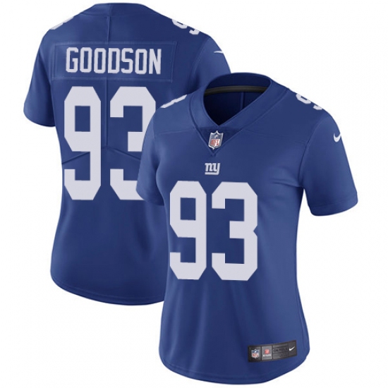 Home>NFL>New York Giants>B.J. Goodson>Women's Nike New York Giants #93 B.J. Goodson Royal Blue Team Color Vapor Untouchable Elite Player NFL Jersey