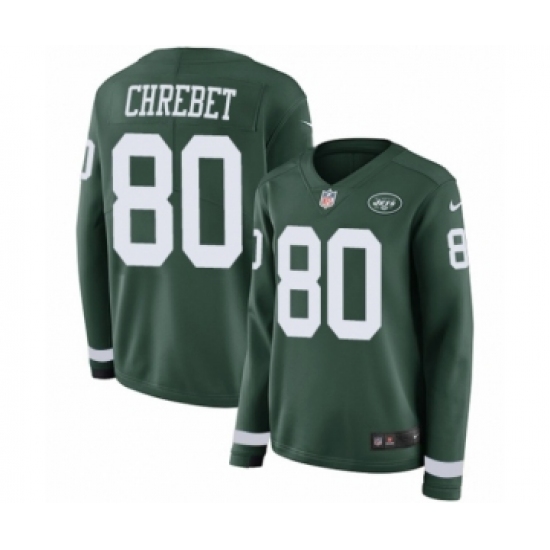 Women's Nike New York Jets #80 Wayne Chrebet Limited Green Therma Long Sleeve NFL Jersey