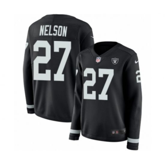 >Women's Nike Oakland Raiders #27 Reggie Nelson Limited Black Therma Long Sleeve NFL Jersey