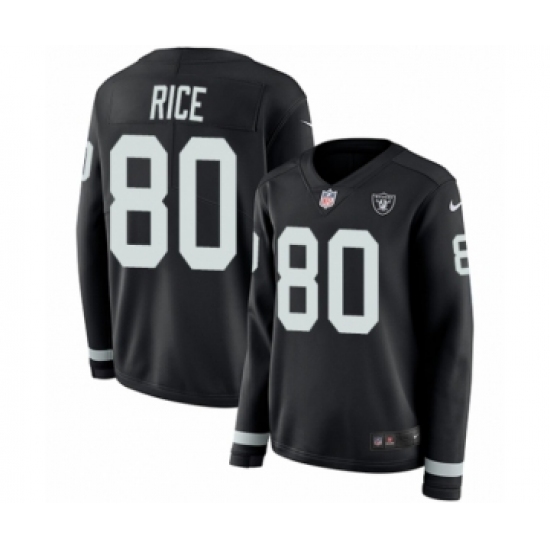 Women's Nike Oakland Raiders #80 Jerry Rice Limited Black Therma Long Sleeve NFL Jersey