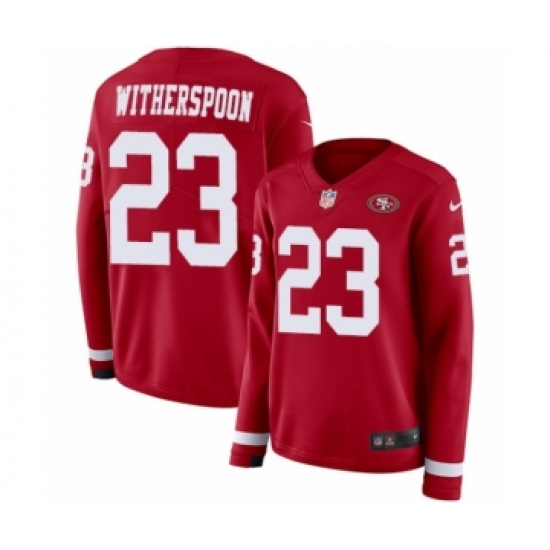 >Women's Nike San Francisco 49ers #23 Ahkello Witherspoon Limited Red Therma Long Sleeve NFL Jersey