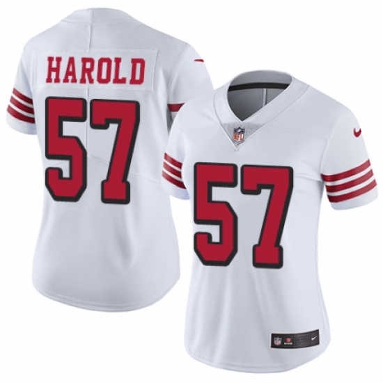 Women's Nike San Francisco 49ers #57 Eli Harold Limited White Rush Vapor Untouchable NFL Jersey